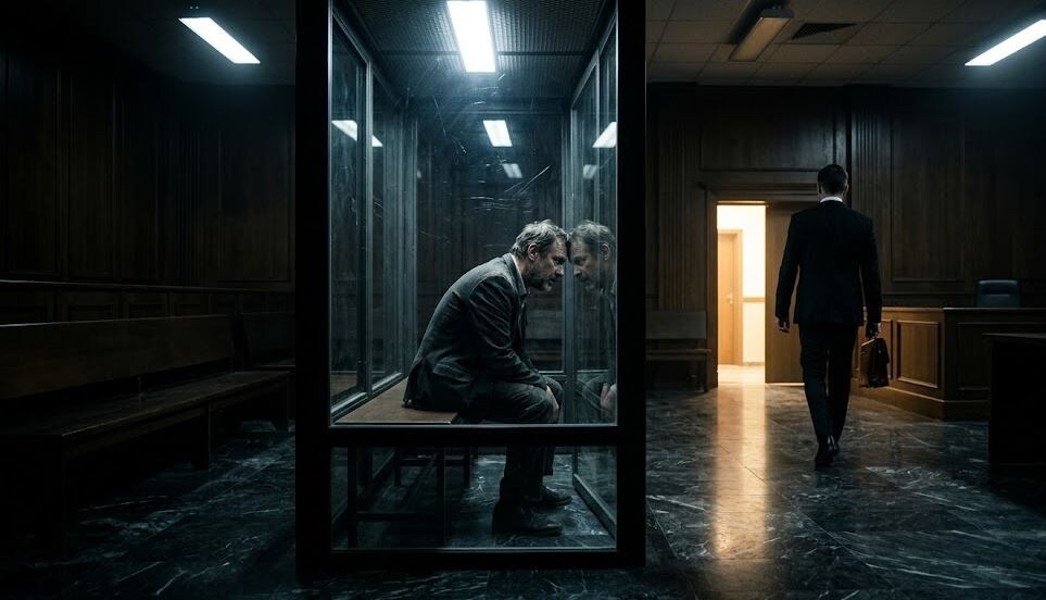 Судебный процесс начался через три месяца. Андрей сидел в стеклянном боксе — «аквариуме». Он выглядел как тень: впавшие щеки, дрожащие пальцы, потухший взгляд. Но внутри него теплилась надежда. Сергей обещал, что сегодня наступит перелом. Сегодня они нанесут ответный удар.