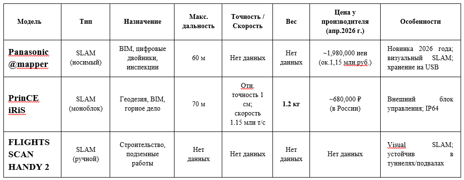 На начало апреля нам показались интересными 3 новинки: японские Panasonic и FLIGHTS (пока не продаются в России), ручной лазерный сканер PrinCE iRiS (продается в России компанией ПРИН):