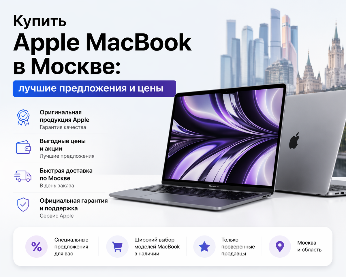С покупкой MacBook в Москве многие сталкиваются с выбором, который зависит от множества факторов: от характеристик устройства до условий покупки. В столице России представлено множество предложений, как в официальных магазинах, так и у авторизованных реселлеров и интернет-магазинов. Рассмотрим, что нужно учитывать при выборе и где можно купить Apple MacBook с гарантией качества и по выгодной цене.