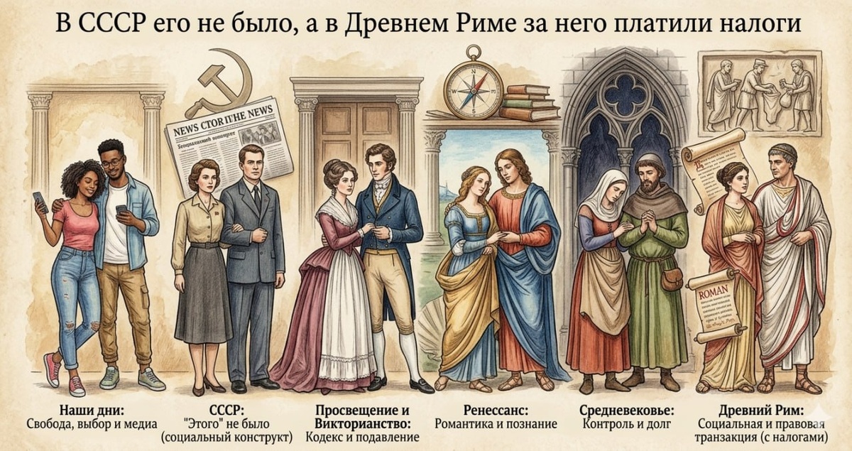 Часть 2: Средневековый тайм-менеджмент и резиновая революция Когда на сцену вышла церковь, праздник жизни приуныл. Секс стал грехом, а список правил — длиннее лицензионного соглашения Windows. Разрешалась одна поза и строгий график. Минус посты, праздники и выходные — и на радости оставалось всего 50 дней в году. Пропустил вторник — жди осени. Иронично, что пока народ страдал, в Ватикане вовсю шла «порнократия»: Папы устраивали такие оргии, что Калигула в аду нервно курил. Герой истории — Чарльз Гудьир. До него в ход шли кишки ягнят и козлиные пузыри. После такого латекс — это вершина цивилизации. В СССР же случился крутой вираж. От либеральных 20-х с теорией «стакана воды» и нудистами мы прыгнули в сталинский аскетизм. Секс стал дефицитом круче импортных джинсов. Фраза «В СССР секса нет» родилась из неловкости, но стала девизом эпохи, где дети появлялись на свет исключительно от силы мысли и верности партии.