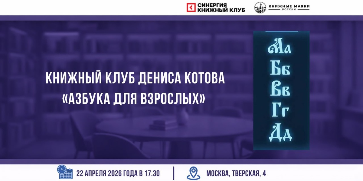 +) 🕐22 апреля 2026 (среда) Сбор гостей: с 17:00, начало: 17:30 Завершение: 19.30 Адрес: Тверская, 4, Медиахолл «Синергия» Полную программу мероприятий Книжного клуба «Синергии» в Медиахолле на Тверской, 4 и на других площадках вы можете найти в канале Книжного клуба Синергии в МАХ 😀😃😄😁😆Наши предки о людях необразованных и тёмных говорили: «Ни аза не ведает». В современных условиях самым надёжным и доступным активом для управленцев и предпринимателей является язык коммуникации, в первую очередь – русский (для россиян). Понимание его органики и механики, влияющей на команду, сообщество и экосистему, которую создаёт лидер организации, позволяет активировать технологию точного действия. Знание азов языка, создающего Образ Победы над культурной энтропией и неблагоприятными бизнес-обстоятельствами, даёт лидеру новый ресурс влияния. Чтобы разобраться в законах и принципах языка, его энергии, функциях, потенциалах и логике полезной работы, стоит начать освоение азбуки под новым управ