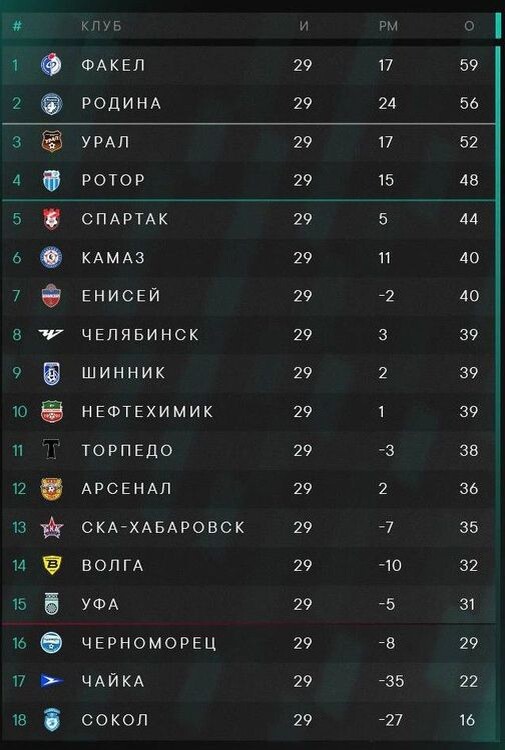 Фактически, получается, что топ-4 в Первой лиге сформировалась: «Факел», «Родина», «Урал» и «Ротор». Вопрос, как в итоге команды распределятся: у кого будет прямая путевка, а кого ждут стыковые матчи.