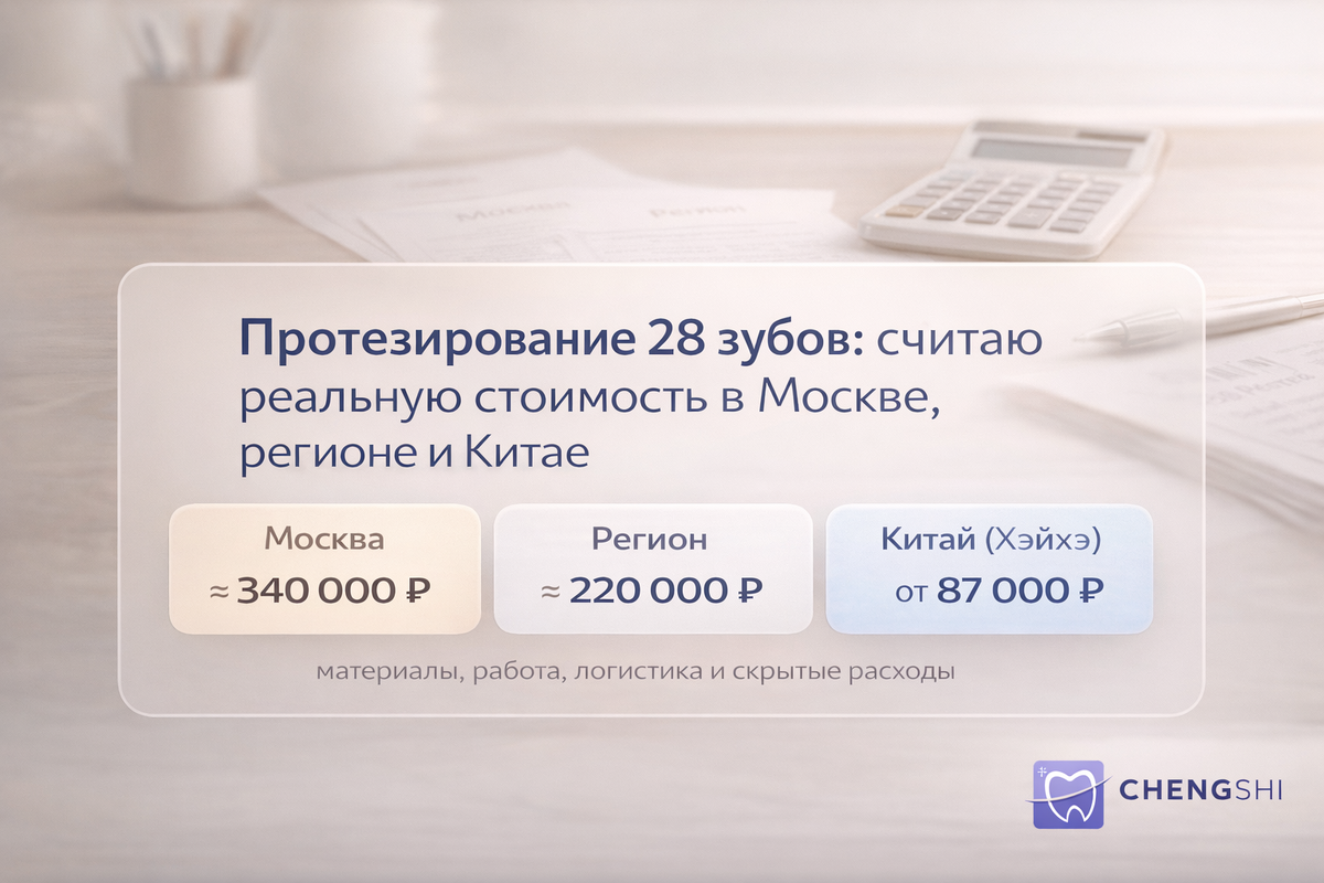 Протезирование 28 зубов: считаю реальную стоимость в Москве, регионе и Китае