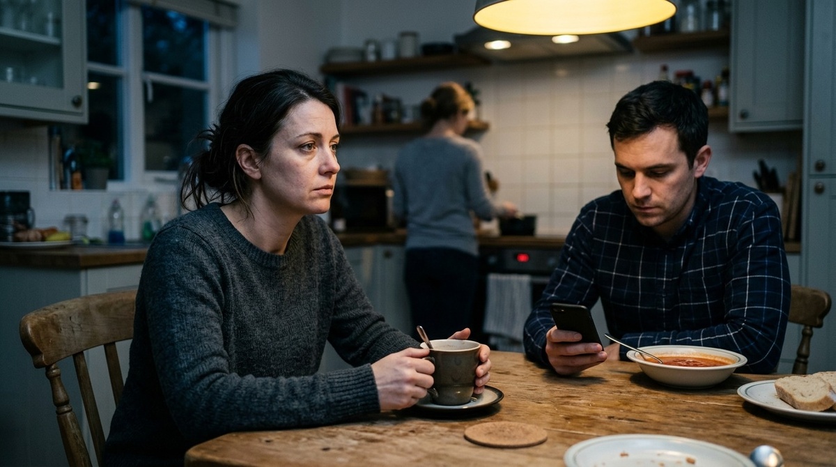 Снаружи это выглядит мелочью. Ну подумаешь, ляпнул. Но я много раз видела похожие сцены, и почти всегда после них женщина не просто злится. Она начинает сравнивать себя с призраком, которого даже толком не знает.