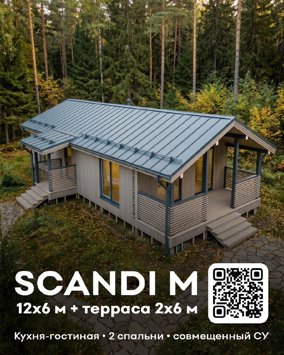 Жилая основа дома 12х6 м + терраса 2х6 м. В проекте предусмотрены кухня-гостиная, две спальни, совмещенный СУ и холл. 3 000 000 ₽ Теплый контур 3 700 000 ₽ Под ключ Подробности на сайте: clck.ru/3T3zaM #ленстройдом #каркасныедома #scandi_m www.lenstroydom.ru +7 (812) 408-30-08 скандимини.рф +7 (812) 504-80-80