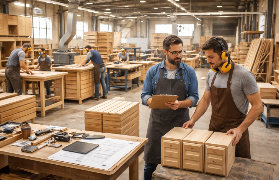 - Монтаж: Сборщики — это лицо вашей компании. Клиент не видит ваших высокоточных ЧПУ станков, он видит человека с шуруповертом у себя дома. Если сборщик приехал с грязными руками, поцарапал клиенту дорогой паркет или не смог ровно выставить зазоры на фасадах, всё высокотехнологичное производство теряет смысл. Контроль качества монтажных бригад и регламентация их работы — приоритет номер один для владельца бизнеса.