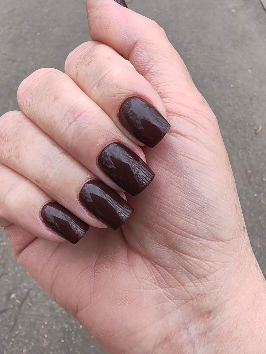 Потом я поехала на маникюр. Сначала хотела чёрные ногти сделать - в земле ковыряться, чтоб грязи не было видно😂, потом решила всё-таки коричневые, ну или тёмный шоколад.