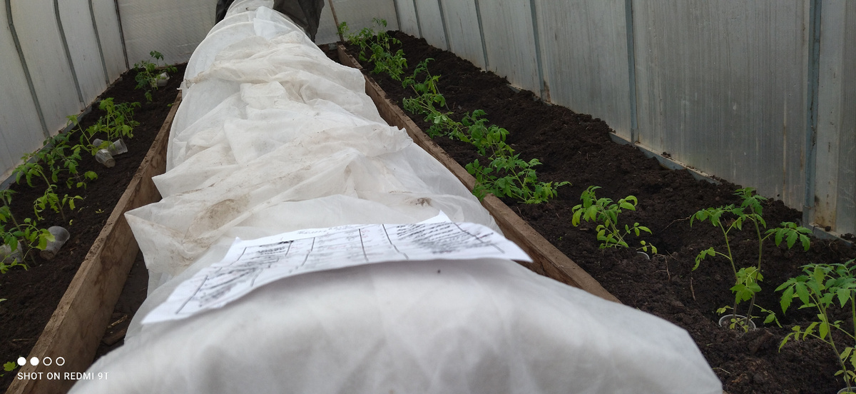 Одного поликарбоната мало. Поставьте внутри теплицы дуги и накиньте плотный спанбонд прямо на рассаду. Это спасет при заморозках до -5°C.