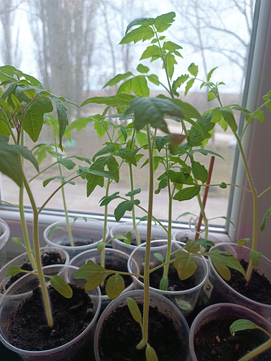 20 апреля. На улице идёт снег. А мы несколько дней назад отвезли часть рассады на дачу в теплицу. Теплица не отапливаемая, разумеется. Я понимаю, что рано, что температура ещё очень низкая, но деваться нам некуда, на стеллажах просто не хватает места.