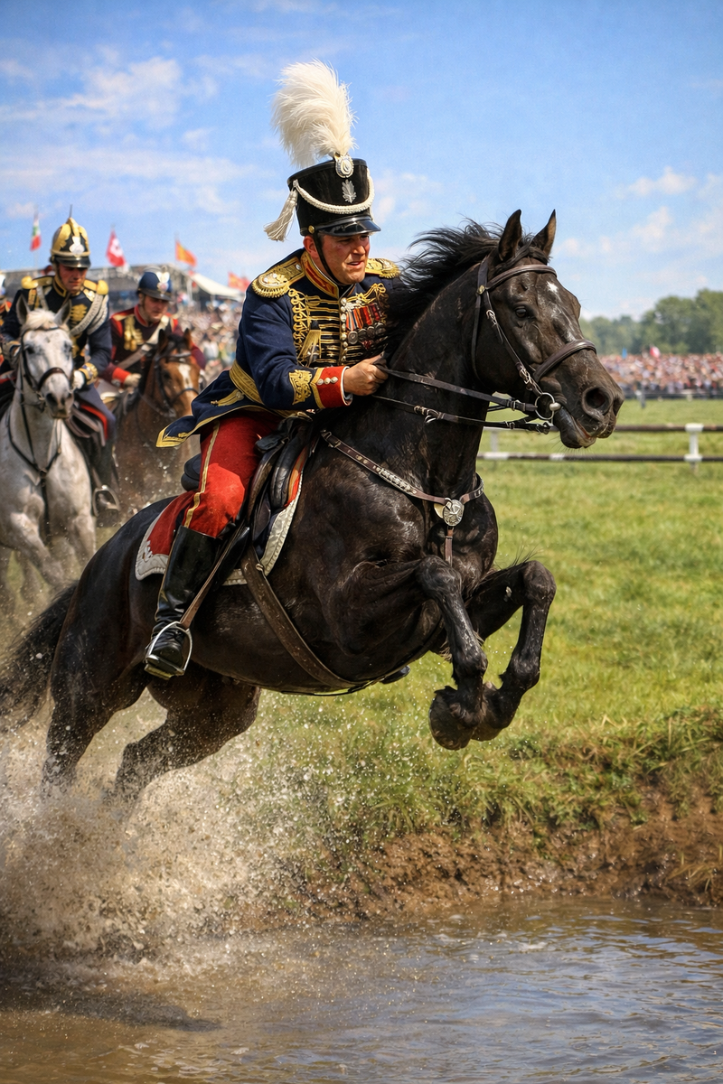 Ветер шевелил белый султан на кивере, который он так и держал в левой руке. Золотое шитьё доломана ловило солнце и дробило его на мелкие, острые блики. Поле, трибуны, синее небо над головой – всё это казалось не декорацией и не наградой, а просто естественным состоянием мира, единственно возможным...