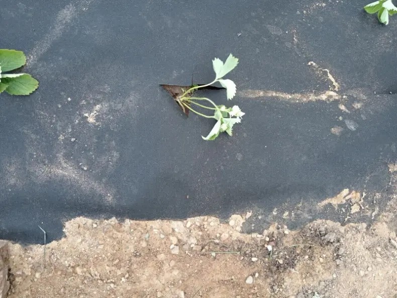 Черный укрывной материал застилают на грядки с клубникой. Он хорошо пропускает воду и воздух, но не пропускает свет. В результате сорняки без солнечных лучей не растут, и вы освобождаете свое время от прополки.