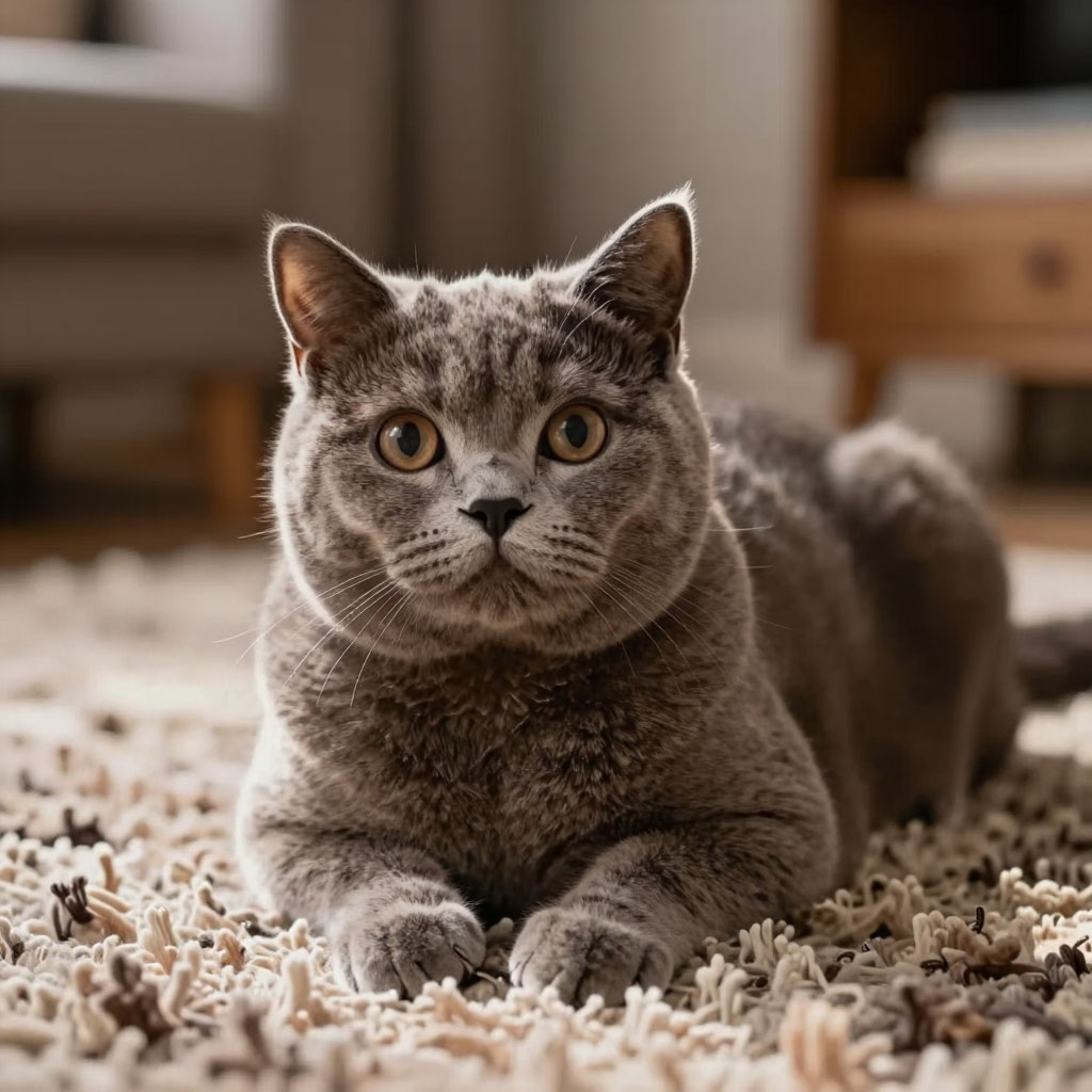 Особенность ухода шерсти требует вычёсывания 1–2 раза в неделю, а в период линьки — ежедневно. Важно следить за весом: британские кошки склонны к ожирению, особенно при малоподвижном образе жизни. Рацион должен быть сбалансированным, с контролем калорийности.