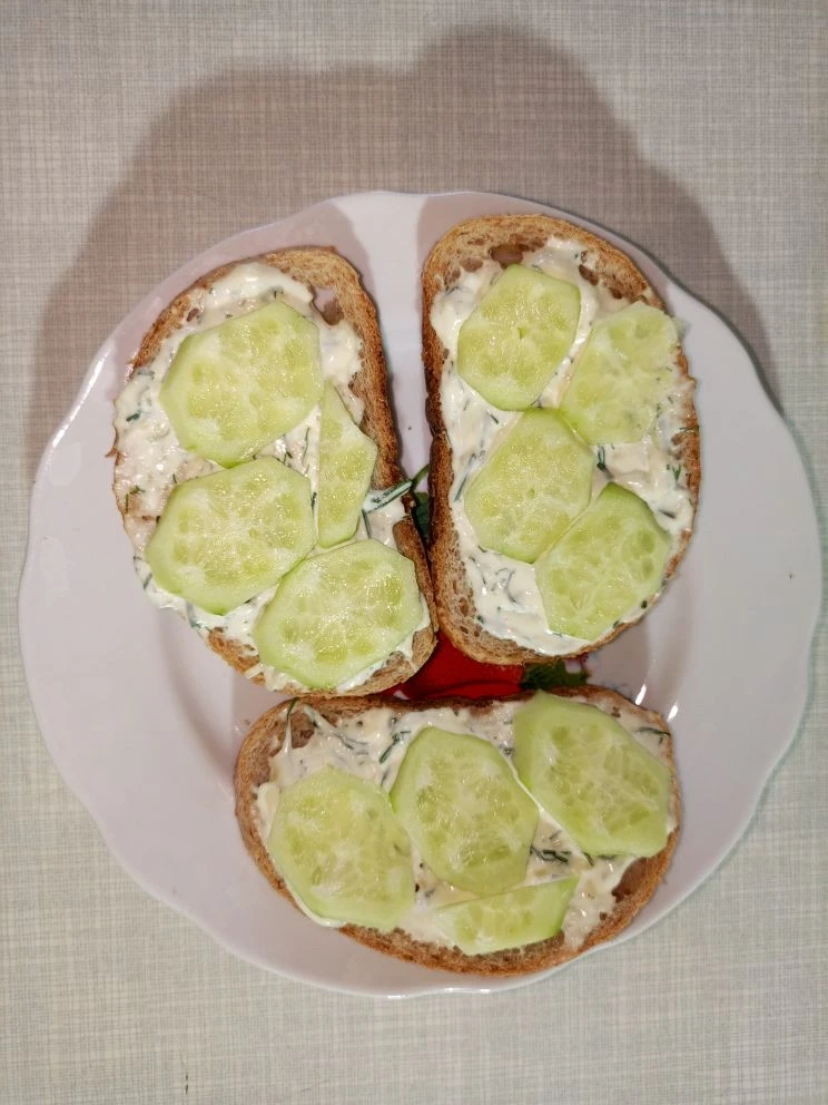 Приветствую вас читатели! Давно не писала, делюсь самым простым и бюджетным рецептом бутербродов, у меня дома они разлетаются на УРА! Ловите, записывайте, делитесь моей ЗАПИСКОЙ ДОМОХОЗЯЙКИ И так, для бутербродов нам надо: Батон, майонез, чеснок, (если есть любая зелень, но в принципе, можно и без неё...), свежий огурчик)))... Погнали... Делаем соус: на мелкой тёрке растираем чеснок (тут кому как нравится, по своему вкусу), если есть свежая зелень режем мелко (если её нет, не беда, можно и без него) и всё это отправляем в майонез, всё перемешиваем. СОУС ГОТОВ! На батон мажем, размазываем все кусочки батона нашим соусом... берём свежий огурчик, моем, я кстати всегда чищу огурцы, ну тут тоже, по вашему вкусу, так вот, я чищу свежий огурчик, нарезаю на пластики, красиво с фантазией украшаем наш батон с соусом... К чаю, или так перекус на вечер готов!!! Приятного аппетита! Берегите себя и своих близких!