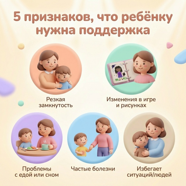 Дети редко говорят прямо: «Мне плохо», «Я боюсь», «У меня что-то случилось». Чаще всего они сигнализируют через поведение, рисунки, самочувствие — и важно уметь это замечать. Особенно это касается педагогов: иногда именно воспитатель или учитель первым видит изменения, которые родители не успевают отследить в круговороте будней. 1. Резкая замкнутость — или резкая агрессия Общительный ребёнок вдруг стал тихим, избегает взгляда, отвечает односложно. Или наоборот — спокойный ребёнок неожиданно стал раздражительным и агрессивным. Оба варианта — сигнал. Не «характер такой» и не «возраст». Резкие изменения в поведении почти всегда говорят о том, что что-то произошло. 2. Изменения в игре и рисунках Появились мрачные цвета там, где раньше были яркие. Агрессивные сюжеты, повторяющиеся темы — разрушение, одиночество, страх, потеря. Дети не всегда могут сказать словами то, что чувствуют. Но они проигрывают это в игре и прорисовывают на бумаге. Если такие изменения появились — стоит присмотреться.