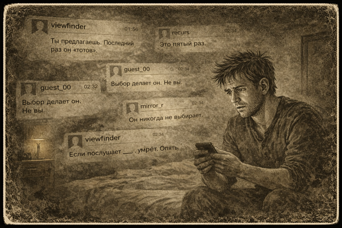 «Viewfinder прав. Но и 7392014 прав. Оба правы. Оба ошибаются. Это не про правду — это про выбор. Выбор делает он. Не вы».