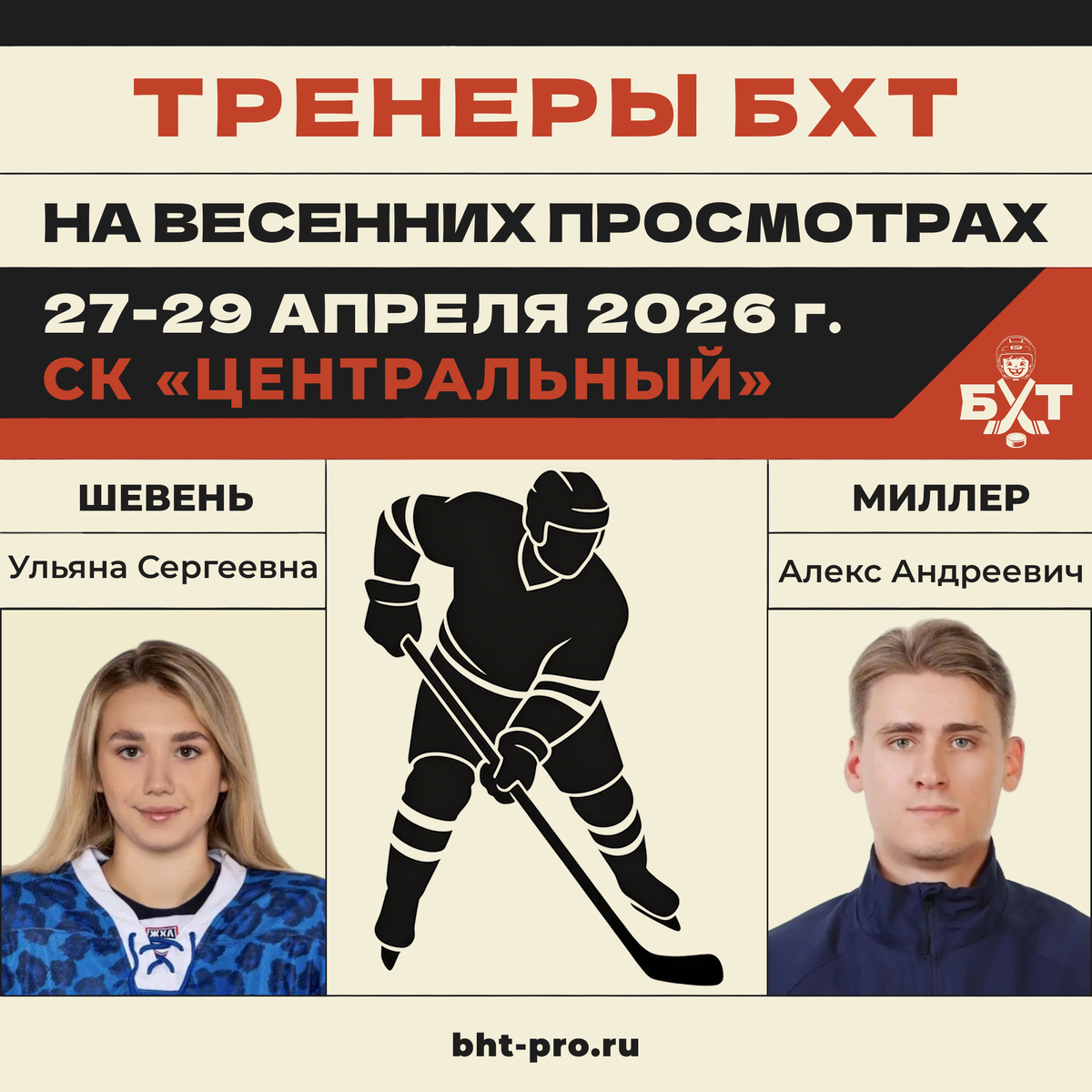 👨🏫 Продолжаем вас знакомить с представителями тренерского корпуса Бюро хоккейных талантов на предстоящих просмотрах 27-29 апреля 2026 года. Сегодня представляем вашему вниманию карточки Шевень Ульяны Сергеевны и Миллера Алекса Андреевича. 📋 Краткие биографические данные Шевень Ульяны: 🎓 Образование Российский университет спорта «ГЦОЛИФК» — Тренерский факультет Кафедра теории и методики хоккея им. А.В. Тарасова 🏆 Карьера Игрок Сборной Москвы Юниорок до 18 лет по хоккею с шайбой сезонов: 2017, 2018, 2019, 2020