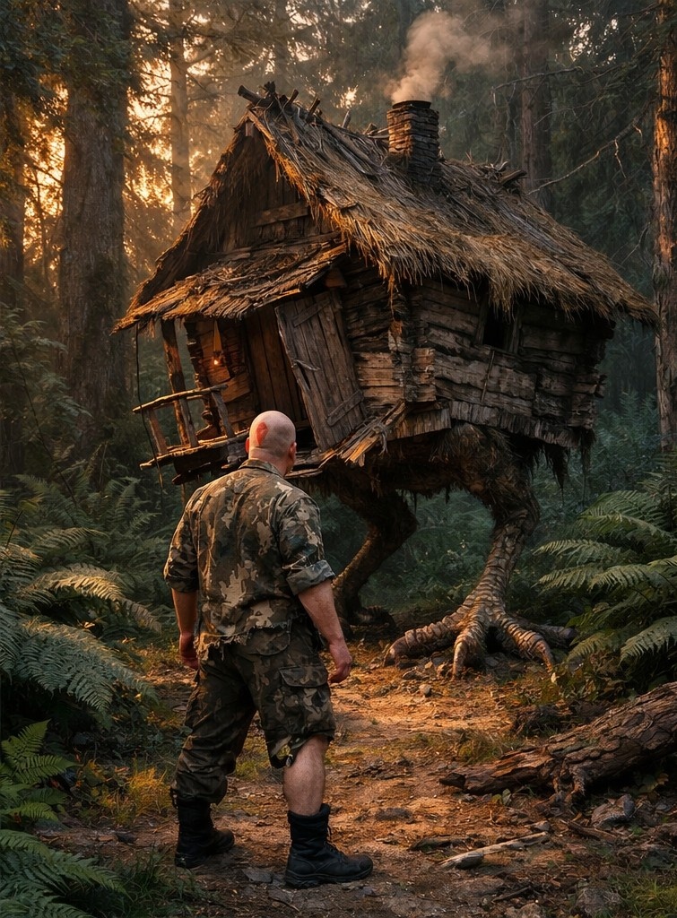 Через каких-то полверсты показалась закопчённая печная труба, за ней крытая соломой крыша, а следом и вся старенькая, кособокая избушка на … курьих ногах.