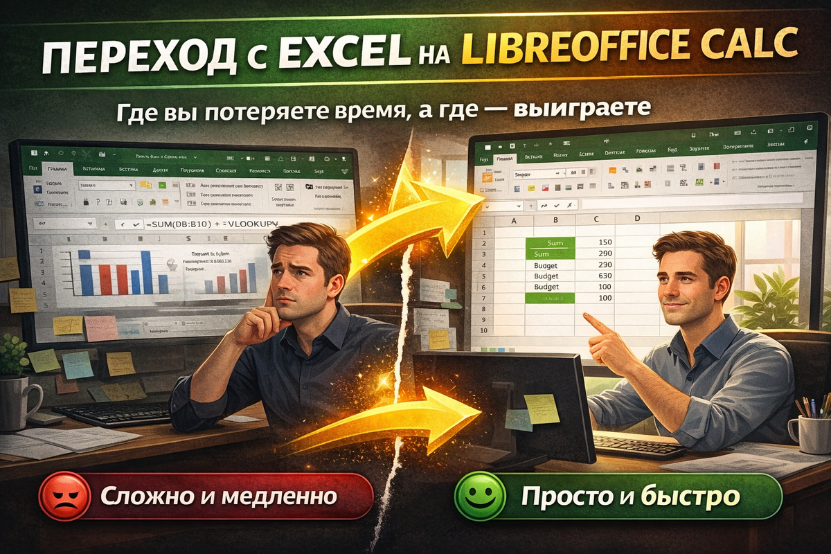 Переход с Excel на LibreOffice Calc: где вы потеряете время, а где — выиграете. Стоит ли переходить с Excel на LibreOffice Calc? Где вы потеряете время, а где реально ускорите работу. Честный разбор с примерами.