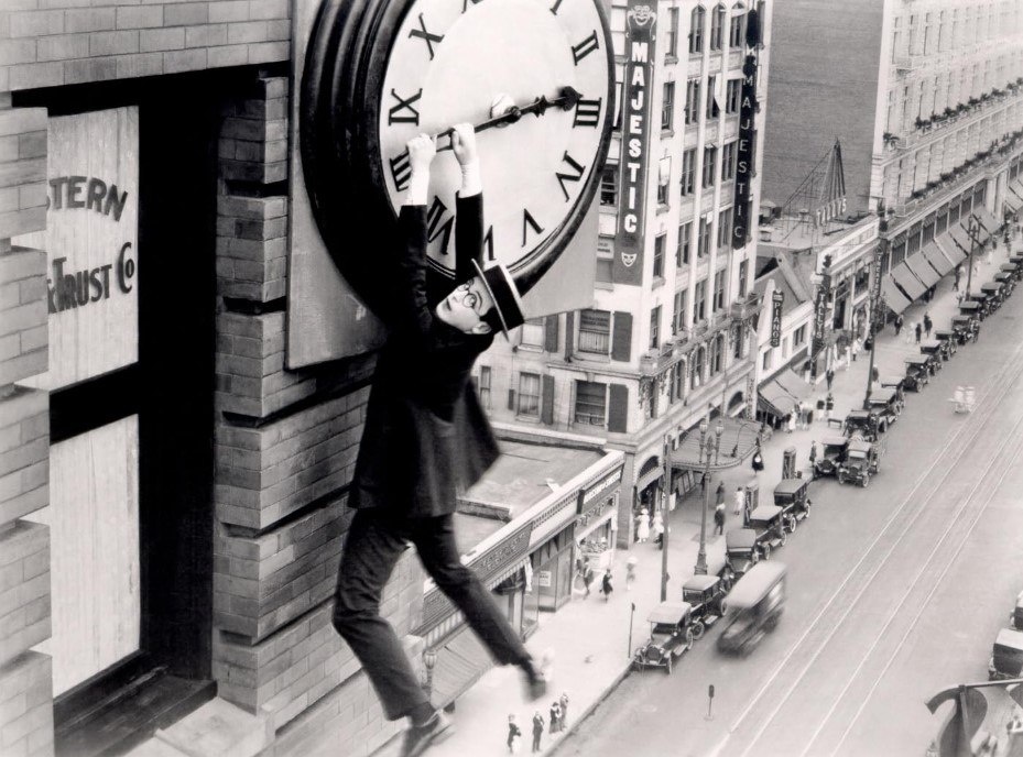 ». Рассказываем об одном из самых знаменитых трюков на заре кино Гарольда Ллойда традиционно причисляют к великой троице комиков эпохи немого кино наряду с Чарли Чаплиным и Бастером Китоном. В своём самом известном фильме — актёр, сыграл провинциала, который едет в большой город, чтобы построить карьеру и заработать денег на свадьбу. В письмах невесте Парень сочиняет, что всё прекрасно, на последние гроши шлёт подарки, но когда Девушка приезжает в гости, положение становится отчаянным. Парень придумывает дерзкий план, чтобы заработать: без страховки взобраться на крышу 12-этажного здания универмага «De Vore». Идея фильма пришла в голову Гарольду Ллойду, когда он увидел подобную сцену вживую — толпа глазела на реального «Человека-Паука» Билла Стротера. Ллойд тотчас познакомился с ним и пригласил сняться в кино. Верхолаз сыграл соседа Парня, который изначально и должен был карабкаться на крышу, но не смог из-за комичного инцидента с полицейским. Парню, как и запланировал Ллойд, пришлос