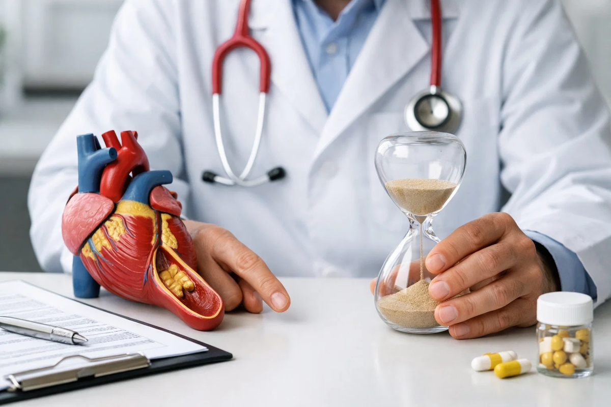 Важно не мерить успех только сроком «за сколько снизился холестерин». Потому что цель не в красивом анализе ради самого анализа, а в том, чтобы уменьшить вероятность инфаркта, инсульта, стенокардии, сосудистой операции, внезапного ухудшения качества жизни. Холестерин — это не школьная оценка, а маркер процесса. Поэтому правильно поставленный вопрос звучит чуть шире: не как быстро убрать цифру, а как быстро и надолго перевести организм в более безопасный режим. Иногда ответ будет: за несколько недель появились первые сдвиги. Иногда — через три месяца достигли хорошей динамики. Иногда — без лекарств не обойтись, и это тоже нормальный, зрелый вариант.