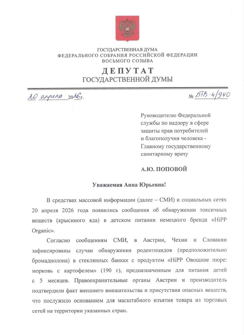 Прошу Роспотребнадзор тщательно проверить все питание HIPP, которое продается в России, чтобы наши дети не отравились