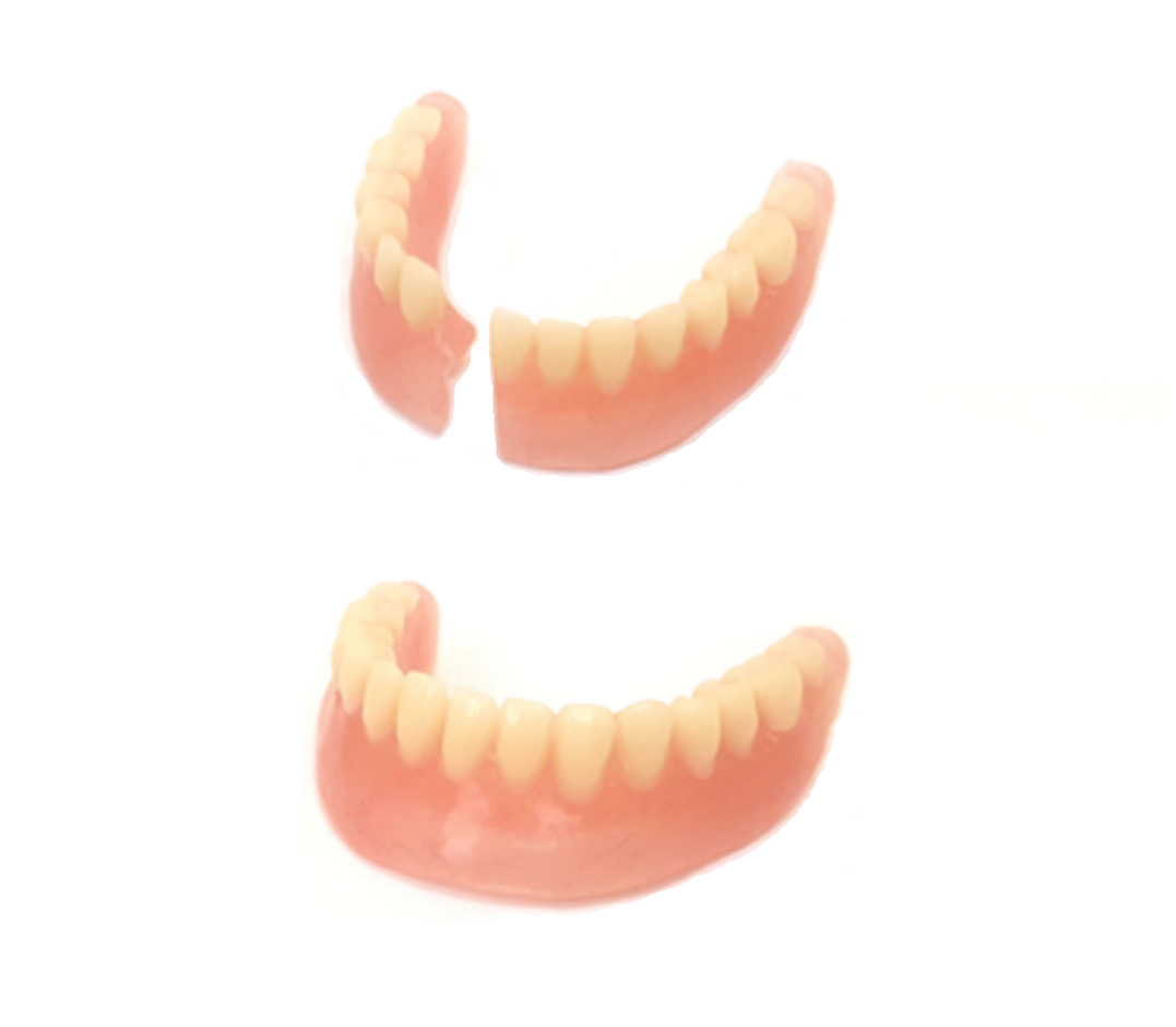 В ходе эксплуатации зубного протеза существует риск его полного перелома или перелома отдельных его элементов. Несмотря на совершенствующиеся технологии моделирования и изготовления зубных протезов, рано или поздно ежедневные жевательные нагрузки или отсутствие должного ухода приводят к потемнению, образованию трещин, сколов и их поломки. Большинство пациентов при столкновении с такой проблемой не до конца понимают, что им нужно делать, поскольку ситуация, когда сломался или треснул протез обычно застает врасплох. Разумеется, в таких случаях необходима максимально быстрая их починка, так как не все пациенты держат запасной протез на случай поломки основного. Какие основные причины поломки протезов? Причин поломки может быть множество, наиболее распространенные из них – это несоблюдение рекомендаций по уходу за протезом, чрезмерная жевательная нагрузка на протез, травма пациента, падение протеза на твердую поверхность. Пользоваться сломанными протезами категорически воспрещается, так ка