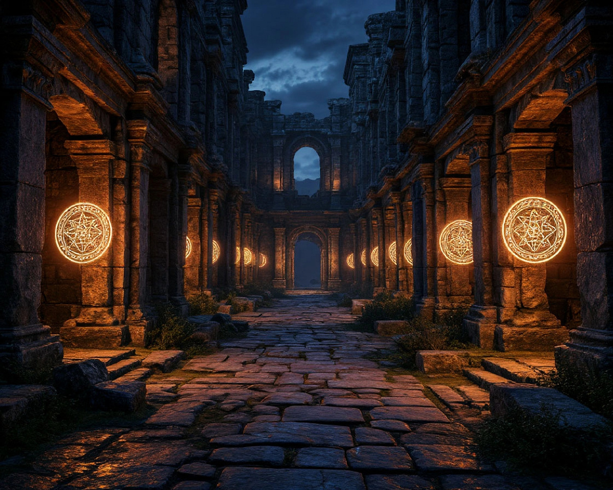 С испугом, но с покорностью Лориана спешно закивала и ринулась ближе к барьеру. Когда она подносила руку к разным его частям, невидимая сила двигала и "вынимала" разные элементы сложного графического рисунка из общей конструкции. Сигил двигался и кружился, как взбесившийся механизм, пока вскоре не распался на кусочки и не открыл проход дальше. За барьером находился почти полностью развалившийся и частично открытый из-за проломов зал, куда и поспешили зайти Зак с Маркусом. Их внимание сразу же привлекла перепалка внутри: фигура человека, в которой сразу же угадывался Иезекиль, осторожно кружила вокруг двух черных силуэтов, искажаемых белыми переливами, словно какая-то извращенная игра светотени. Пока Закаэл еще только пытался осознать происходящее, Маркус в два прыжка сократил расстояние до внезапных противников – без колебаний и сомнений, быстро и четко, – на ходу выпалив даже не то что заклинание, а просто поток подавляющей магии. Экзорцист крепко и властно схватил одну из обезвреженных им теней и, сложив вторую руку в изгоняющем жесте, ударил ею беззащитного духа: на несуществующей плоти существа отразился магический символ изгнания, который Маркус почти что грубой силой вдавил сквозь защиту врага прямо в его "сердце". Обычно изгнание – это куда более ритуальный и тщательный процесс, но, как сказал бы сам Маркус, – главное результат. Воспользовавшись моментом, Иезекиль неведомым образом сотворил странный белый, как будто из света, клинок в руке, которым поразил вторую тень, на удивление добившись столь же положительного результата. Не то чтобы Зак сильно мешкал, но к моменту, как он собрался и подготовил своё заклинание, всё уже и закончилось.