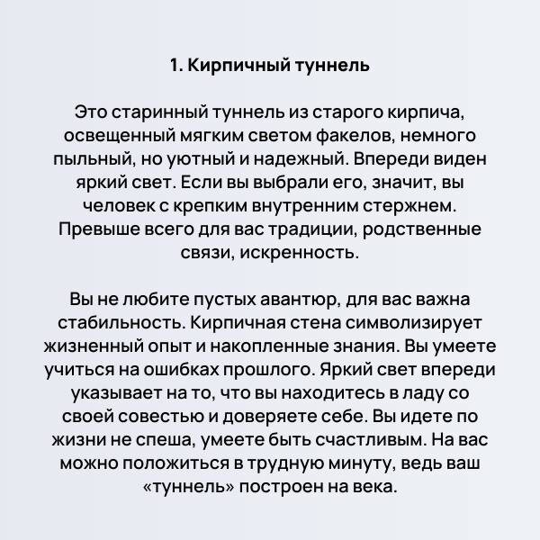 Ссылка на пост 🙌Понравился ли Вам тест, похоже на Вас? ✍🏻Напишите в комментариях, совпало ли ваше ощущение с результатами. 💎 Телеграм Марии Марихами. Создатель себя