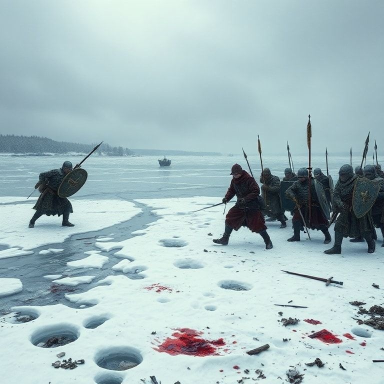Настоящая битва на Чудском озере была не такой красивой, как в кино. Это был жестокий апрельский бой на подтаявшем льду, где никто эффектно не тонул, а просто рубились насмерть. И победил Александр Невский не чудом, а тактикой: заманил рыцарей на неудобную позицию, использовал охват с флангов и конный удар. Это была победа полководца, а не декорация.