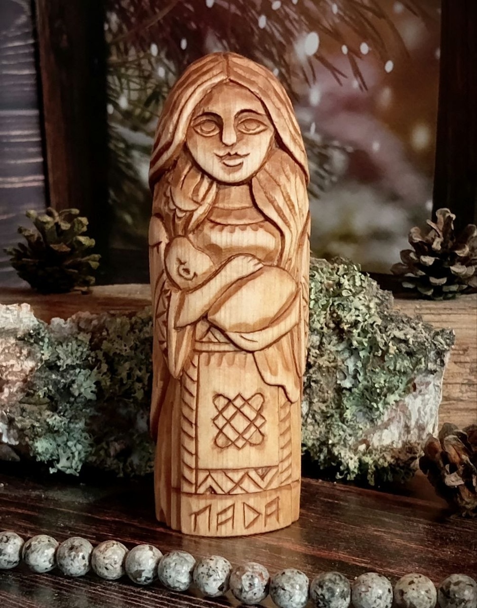 Вырезала новую фигурку: Лада, 15 см, из липы, покрыта морилкой и маслом. В её руках — младенец. Не просто дитя, а символ продолжения рода, весеннего пробуждения и женской силы, дающей жизнь. Кто такая Лада? Лада — славянская богиня любви, брака, красоты и плодородия. Она хранительница домашнего очага, покровительница семьи и женской доли. Образ Лады с младенцем особенно почитался как знак благословения на потомство, защиту матери и дитя. Что даёт такой оберег? 🔸 Гармонию в семье 🔸 Лёгкое материнство и здоровье детей 🔸 Тепло и лад в доме 🔸 Покровительство для молодой пары или будущей мамы Фигурка небольшая, но очень уютная. Уже доступна. Кому откликается — пишите в личку или заглядывайте на Wildberries 🙌 #Лада #СлавянскаяМифология #РезьбаПоДереву #Оберег #Материнство #РучнаяРабота #КумирыБогов