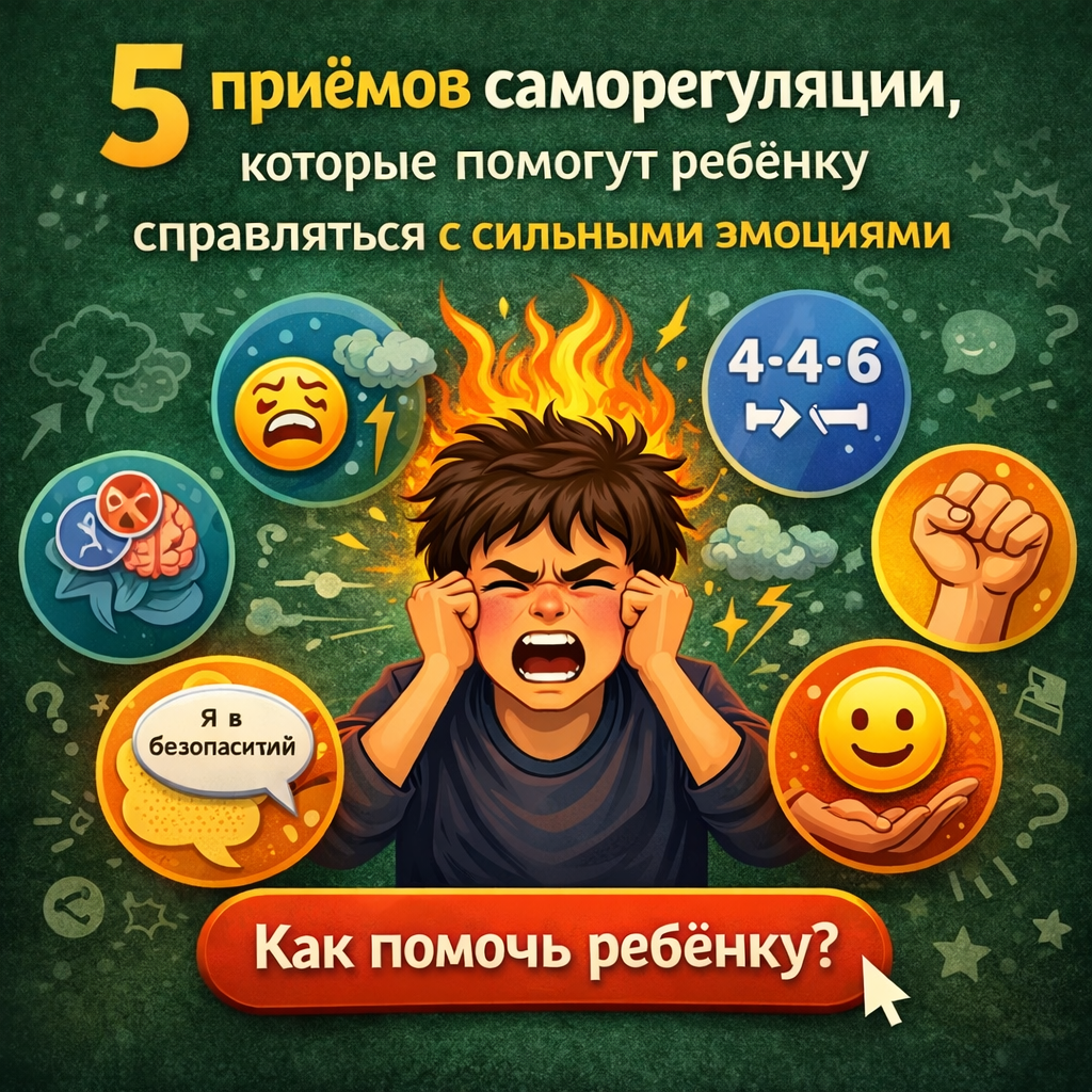 Сначала нужно научить его инструментам. 1️⃣ Приём «Стоп-мысль» Главная идея. Мысли — это не факты. Когда эмоции накрывают, ребёнок начинает себя накручивать: Научите ребёнка задавать себе три вопроса: Это возвращает мозг из паники в реальность. 2️⃣ Приём «Назови эмоцию» Эмоции усиливаются, когда они без имени. Когда ребёнок говорит: