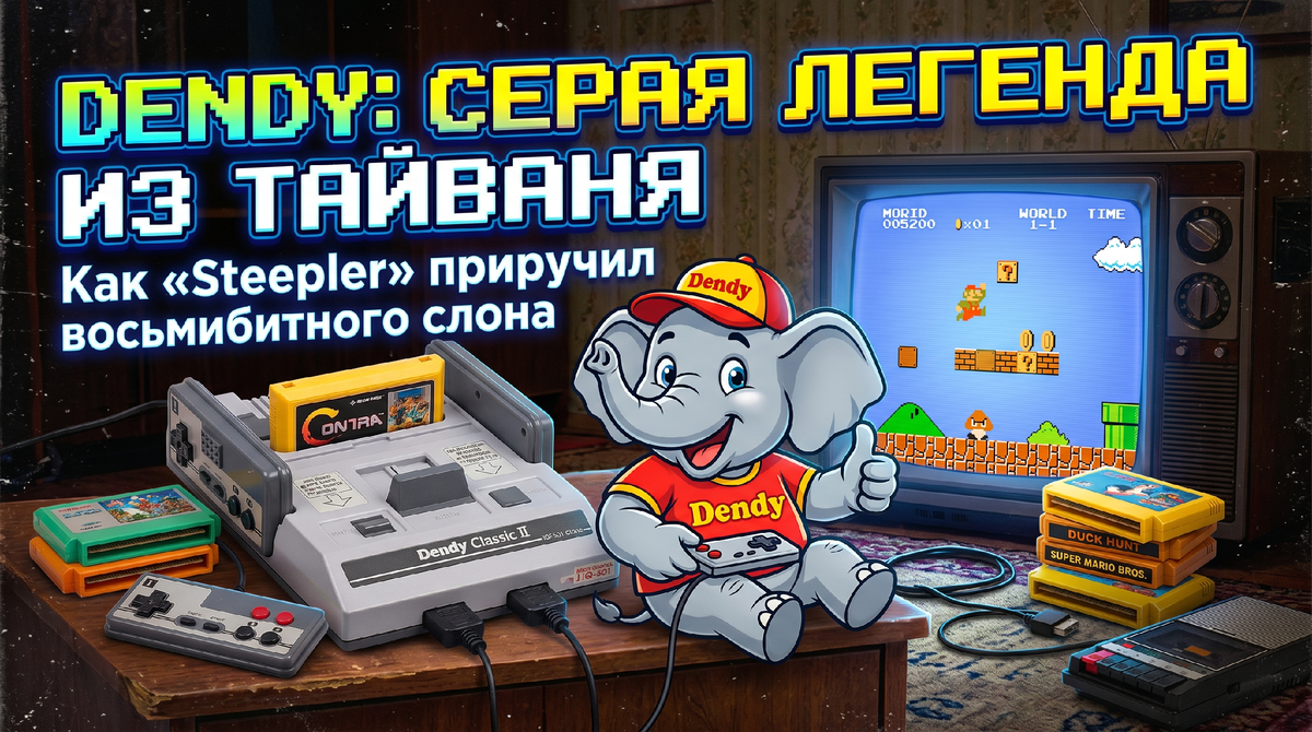 В 1992 году, когда в стране менялось всё — от флагов до цен на хлеб, компания Steepler провернула гениальную аферу. Пока Nintendo игнорировала «дикий» рынок СНГ, наши ребята привезли из Тайваня клоны японской Famicom (в США — NES), наклеили логотип со слоненком и назвали это Dendy.