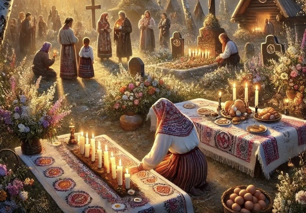 В этот день принято посещать кладбища, убирать могилы, зажигать поминальные свечи и общаться с мертвыми. Многие приносят с собой куличи, крашеные яйца и другие угощения, которые затем раздают нуждающимся, как бы разделяя часть земных благ с теми, кто уже отошел в мир иной. В церквях служатся специальные панихиды, где верующие возносят молитвы о душах усопших.