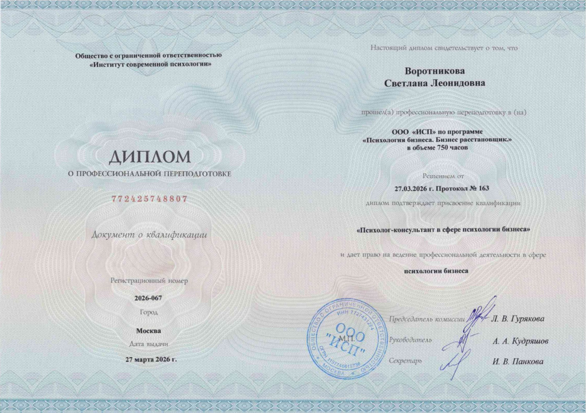 Друзья, хочу поделиться с вами важной и очень радостной для меня новостью! Я завершила профессиональную переподготовку по программе «Психология бизнеса. Бизнес-расстановщик» (750 часов) и прошла повышение квалификации по супервизии. За этими словами много часов обучения, практики, личных открытий, профессионального роста и любви к своему делу. Это не просто новые документы, а ещё один шаг в моём профессиональном пути, больше глубины, практики и ответственности в работе с людьми и бизнес-запросами. Спасибо всем, кто рядом, кто доверяет, поддерживает и вдохновляет! Очень рада этому этапу и с благодарностью иду дальше. Мои соцсети: TenChat: tenchat.ru/kobasvet