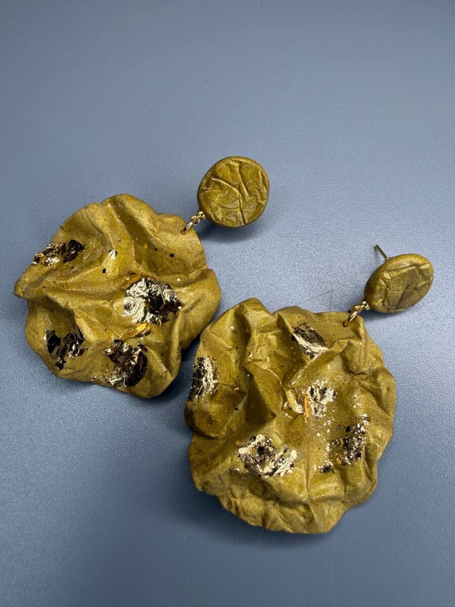Новинки - легкие серьги и кольцо «мятое золото». Полимерная глина - именно тот материал из которого можно сделать вещи, которые давно хотела сделать, но не знала как. Украшения наилегчайшие, серьги-гвоздики, 6 см, 3000₽; кольцо 15-19 размер (разъемное основание), 2000₽ По вопросам приобретения пишите в директ.