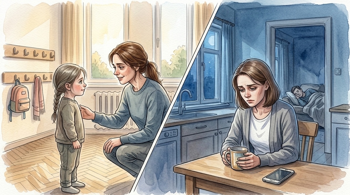 Кира забирала её ровно в пять. Одевала быстро, молча. Никогда не спрашивала что и как — просто кивала и уходила. Другие мамы болтали, задавали вопросы. Кира — нет.