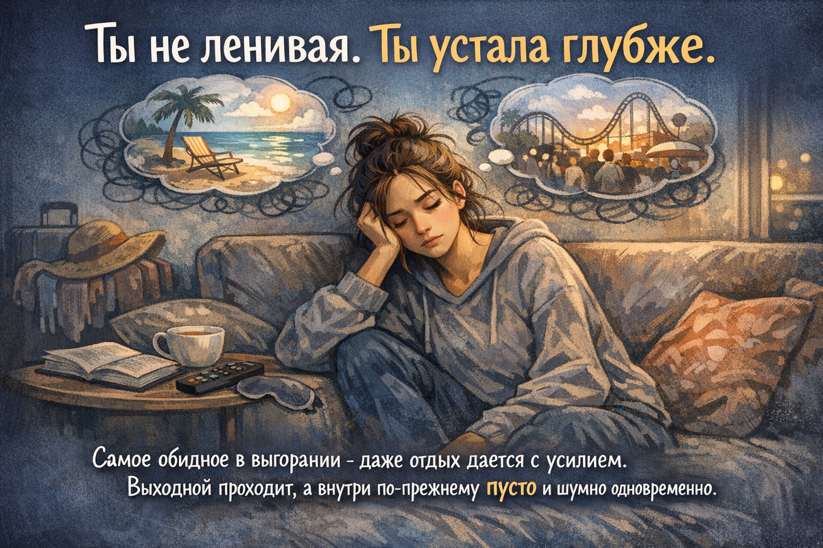 Иногда женщина правда старается отдыхать, но не восстанавливается, потому что ее истощает не количество дел, а сам способ жизни.