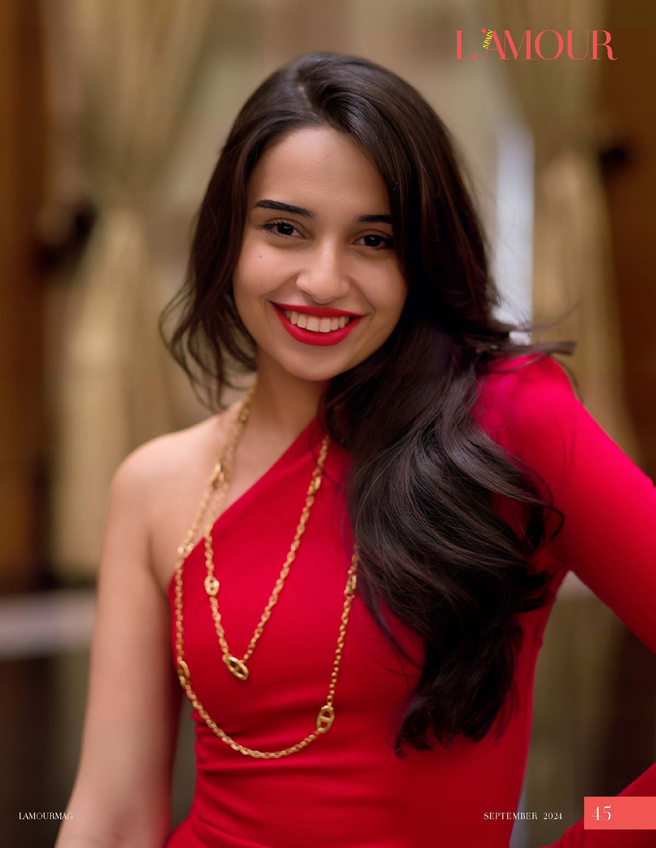 На страницах модного журнала разворачивается чувственная и одновременно сдержанная история — фотосессия, в которой главную роль играет не только модель, но и свет, пространство и цвет. Перед нами — брюнетка с мягкими чертами лица и выразительным взглядом, словно созданная для камерных интерьерных съёмок. Её образ построен на силе одного цвета — насыщенного алого. Платье на одно плечо подчёркивает линию шеи и ключицы, открывая одну сторону и создавая асимметрию, которая притягивает взгляд. Ткань плотно облегает фигуру, не перегружая силуэт лишними деталями — всё работает на чистоту формы и цветовую доминанту. Причёска — естественная, но продуманная: длинные тёмные волосы уложены мягкими волнами, которые струятся по плечам и спине. Иногда модель небрежно проводит рукой по волосам, слегка приподнимая их у корней — этот жест добавляет кадрам живости и ощущение движения внутри статичного пространства. Локоны выглядят лёгкими, почти воздушными, что контрастирует с плотностью ткани платья. Ма