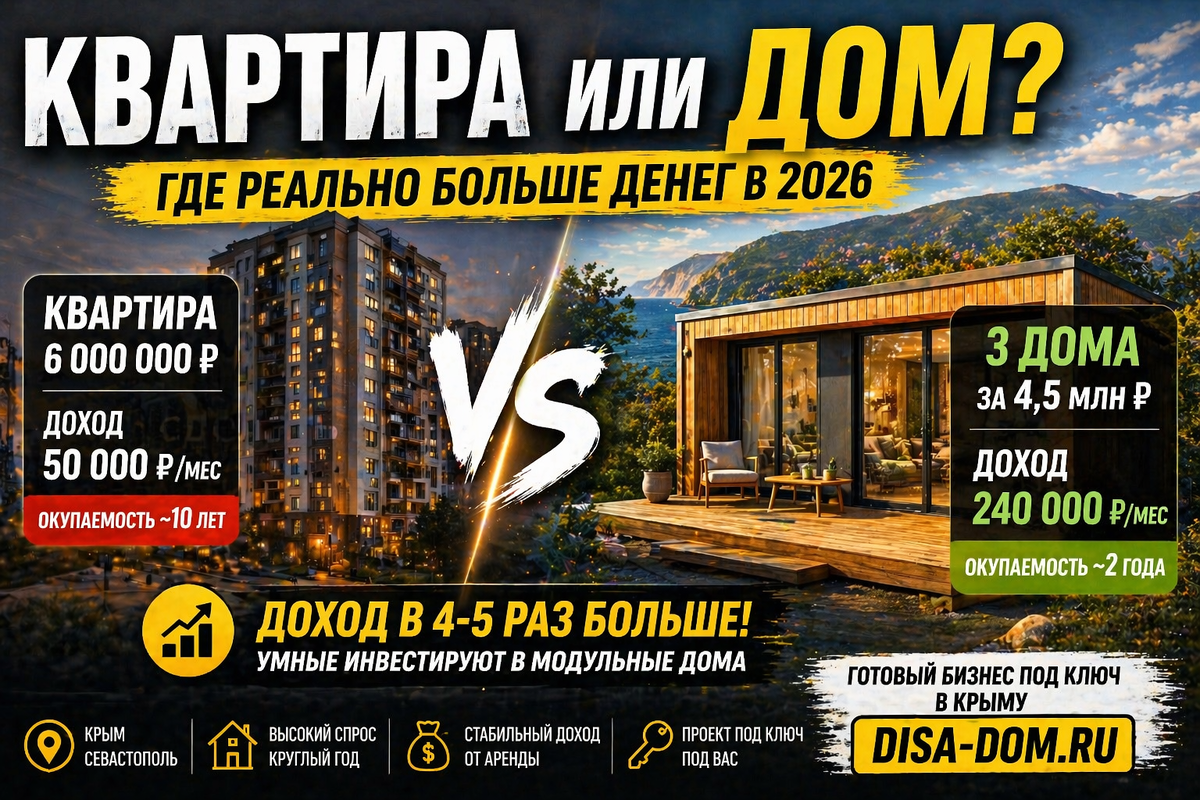 Параметр (Вложения): Квартира/Модульные дома 6 млн ₽ / 4,5 млн ₽