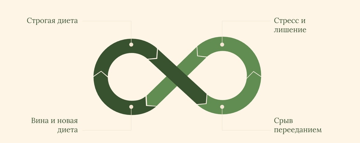 Я так часто слышу и вижу эту фразу "Я сорвалась". Кажется как будто вот я себя поругаю и пойму что так делать не надо, буду стойко терпеть ограничения и обязательно добьюсь цели. Но это не работает. Начинается этап стойкости и снова "я сорвалась". Сама эта мысль опасна, она не ведет к результатам. Она ведет к новым срывам. Срыв - это не просто переедание, а ощущение, что мы вернулись к старым привычкам и всё начатое обесценилось в одно мгновение. Появляется чувство, что все достижения прошли мимо. Возникает внутренний голос, который безжалостно критикует за "слабость". В итоге мысль "я сорвалась" запускает саморазрушающий цикл, который не решает проблему, а только её усугубляет. Причины срывов: Срыв не помогает взять себя в руки, а запускает цикл "диета-зажор". В диетическом мышлении мы ставим контроль на первое место. Надо так и никак иначе Это нельзя Запрещенка Контроль ведет к цели Вроде все в порядке, но тут вообще нет нас. Есть набор каких-то действий, какие-то правила и н
