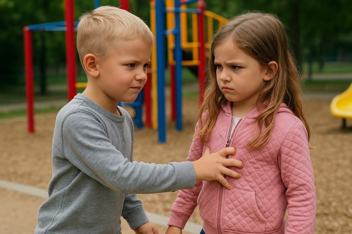 1. Остановите физически безопасно и сразу разделите детей, не выясняя, кто начал. Встаньте между ними, мягко разведите руки или отведите своего ребёнка на шаг в сторону. Зачем: прекратить вред и не дать конфликту разогнаться дальше.