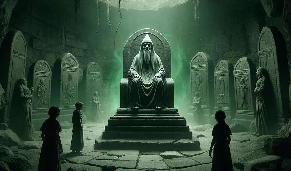 Когда Спенсер в порыве любопытства наклонился над шлемом, произошло необъяснимое: из глазниц существа ударили два ярких зеленых луча. Ослепленный и охваченный первобытным ужасом, авантюрист бежал.
