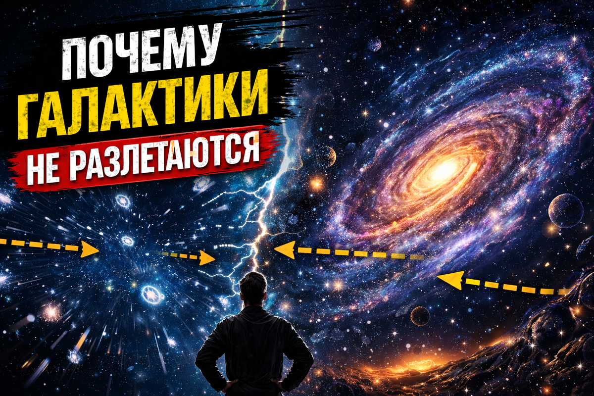 Если посмотреть на Вселенную в крупном масштабе, становится очевидно - она расширяется. Галактики удаляются друг от друга, пространство растягивается, расстояния растут. Логичный вопрос - почему тогда сами галактики не распадаются. Почему звёзды внутри них не разлетаются в разные стороны. Ответ в том, что во Вселенной одновременно действуют два противоположных процесса. Первое, что важно понять - расширяется не «всё подряд». Расширяется пространство между галактиками. Но внутри связанных систем - таких как галактики, звёздные системы или даже атомы - расширение практически не проявляется. Причина в том, что локальные силы оказываются сильнее эффекта расширения. Галактика - это гравитационно связанная система. Звёзды, газ, пыль и тёмная материя удерживаются общей гравитацией. Каждая звезда движется по орбите вокруг центра галактики. Эти орбиты стабильны, потому что: Похоже на Солнечную систему, только в гораздо большем масштабе. Чтобы звезда покинула галактику, ей нужно набрать скорость