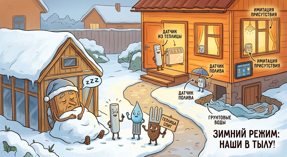Когда урожай собран, банки закатаны, а грядки укрыты снегом, большинство датчиков и контроллеров отправляются пылиться в сарай до весны. Я тоже так раньше делал. Пока в одну из зим не случилось две неприятности, которые заставили меня пересмотреть подход.