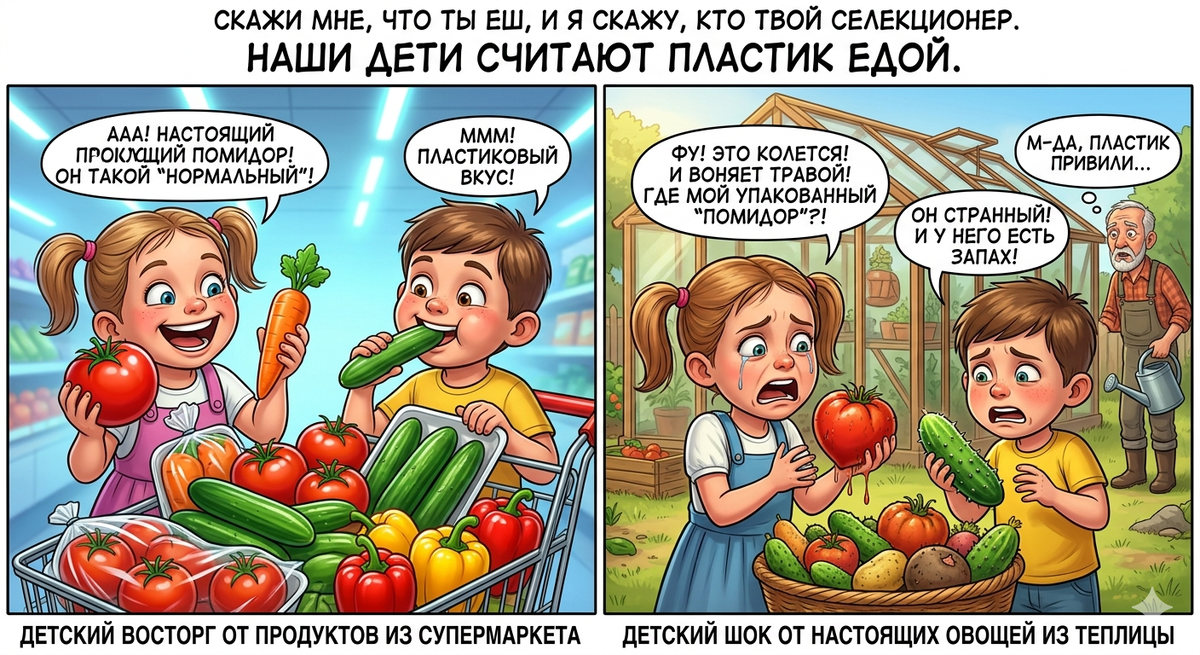И самое страшное — дети не понимают, что они потеряли. У них нет точки отсчёта. Эталоном вкуса для них становится вот этот пластмассовый муляж. А настоящий, живой плод — кажется «неправильным», «слишком пахучим» или «странным на вид».