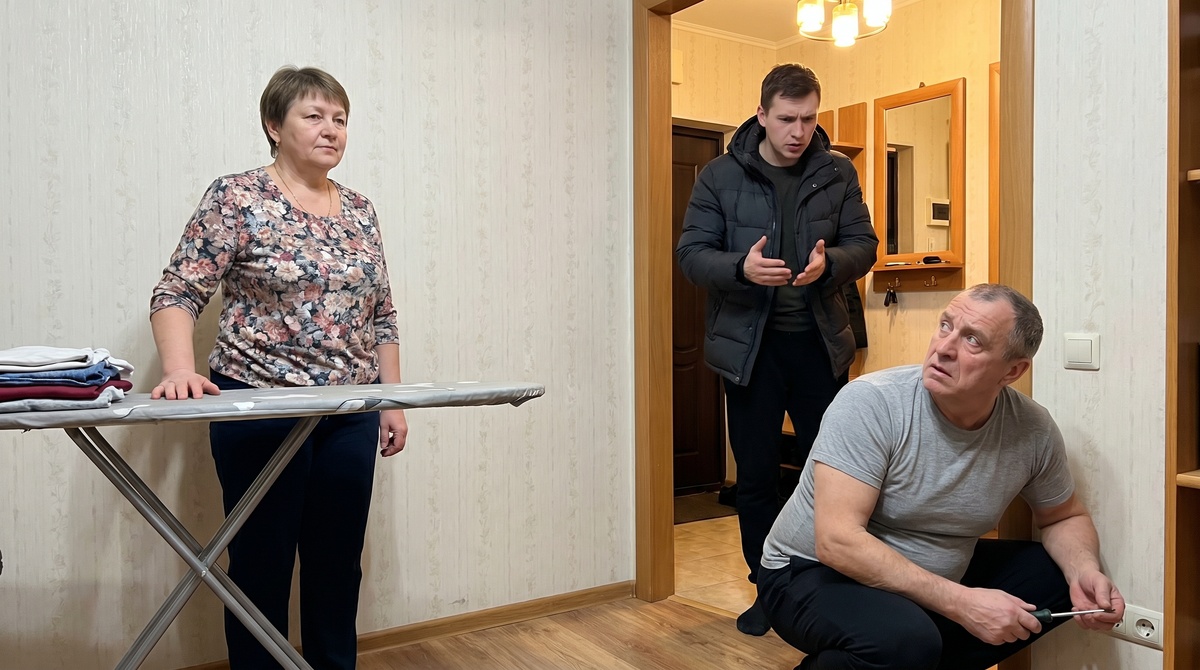 Злата как раз складывала высохшее белье на гладильную доску. Борис чинил розетку у плинтуса, сидя на корточках в растянутой домашней майке.