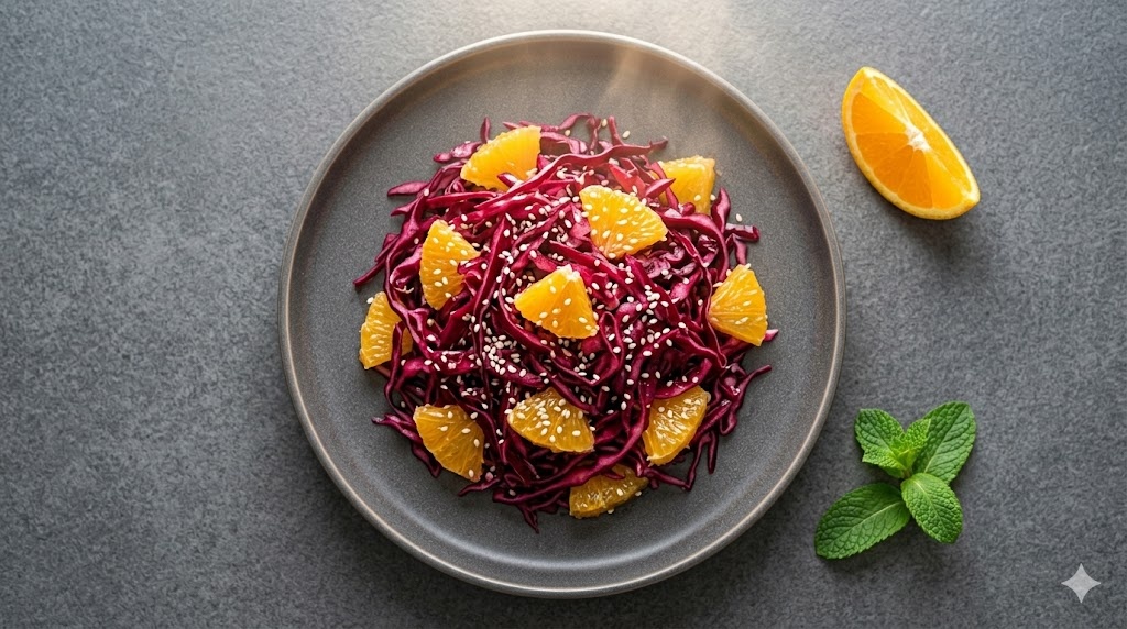 Есть ещё один момент, о котором редко говорят. Антоцианы, те самые пигменты, которые дают капусте её цвет, реагируют на кислоту. Апельсиновый сок в заправке буквально меняет оттенок капусты. Она становится ярче, насыщеннее. Не фиолетовой, а почти малиновой. Это происходит прямо в миске, пока вы перемешиваете салат.