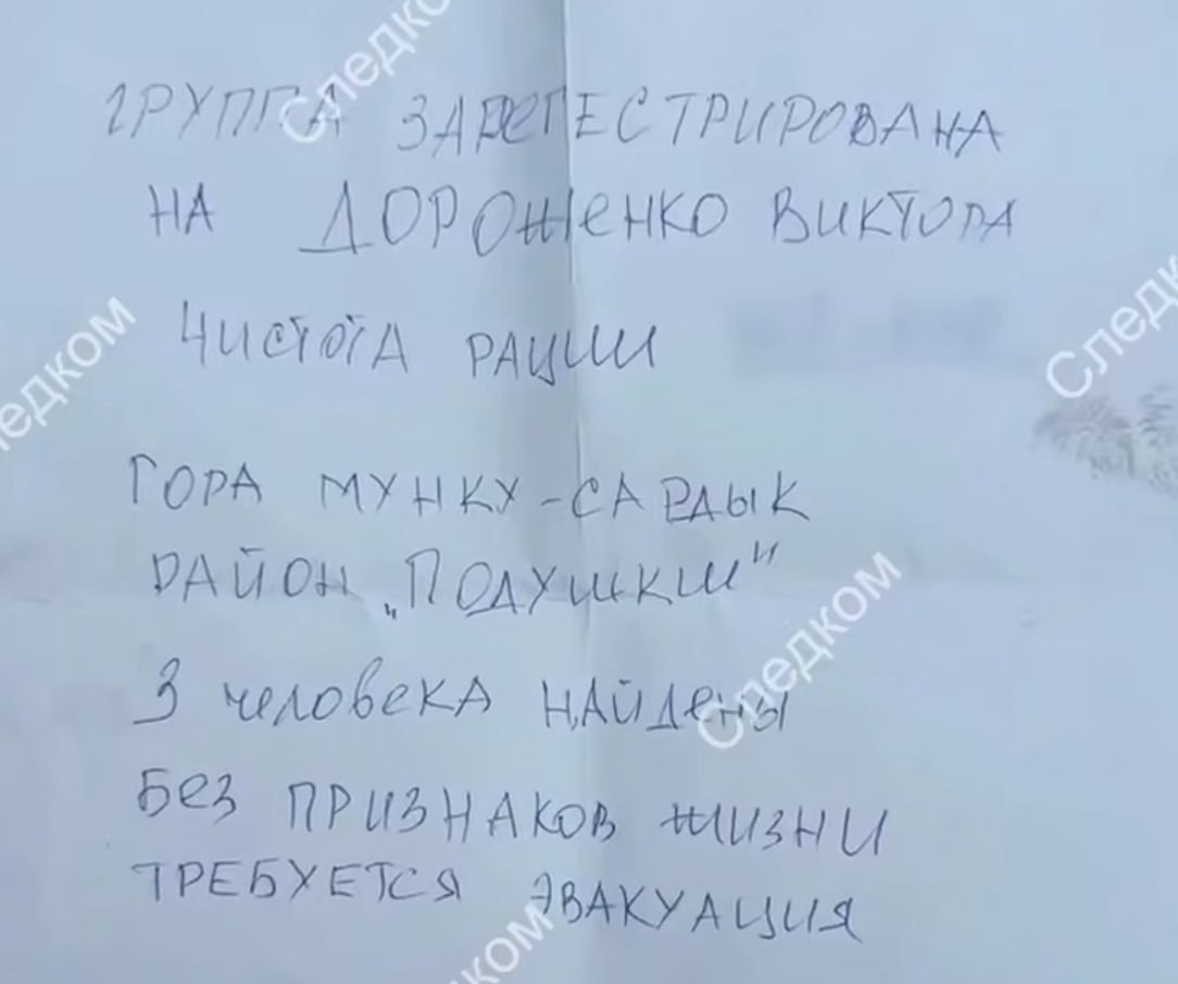 Записку, которую туристы из Красноярска оставили в придорожном кафе, публикует Следком Так они сообщили, что три человека погибли в горах. Сейчас к месту добираются спасатели. Читайте нас в ВК Подписаться | Прислать новость