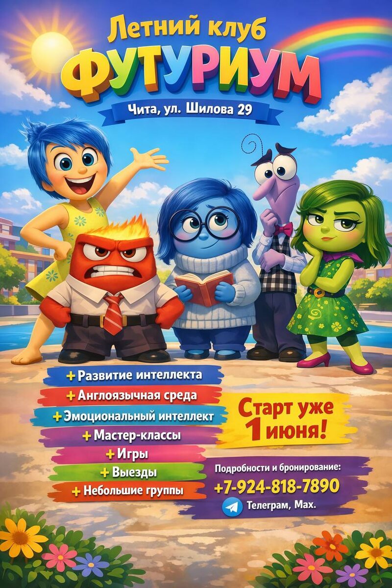 " Этим летом гостей ждет новое приключение по мотивам «Головоломки» Организаторы обещают научить детей понимать свои эмоции и дружить, улучшить английский в игре, а еще – найти новых друзей. 🕐Старт: 1–21 июня, 9:00–18:00 📍ул. Шилова, 29, 💥обед и полдник включены 🔑для записи писать: +79248187890 Предложить публикацию:@zabkulisye_bot Забкулисье в MAX