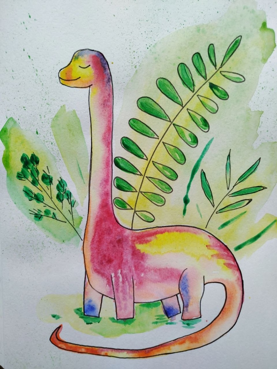 В субботу 25 апреля в 12.30 мы рисуем акварельный постер с динозавром